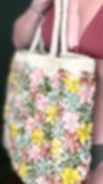 Cabas fleurs en raphia naturel et 1 fleur jaune